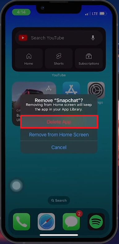 Confirme a exclusão: toque em “Excluir aplicativo” para remover o Snapchat do seu dispositivo.